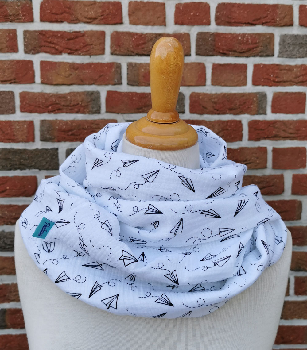 PAPIERFLIEGER weicher leichter Schal mit Papierfliegern aus Musselin
