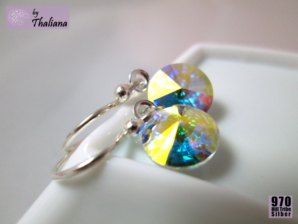 versilberte Fassungen, Swarovski Elements, Ohrhaken aus 970 Hill Tribe Silber