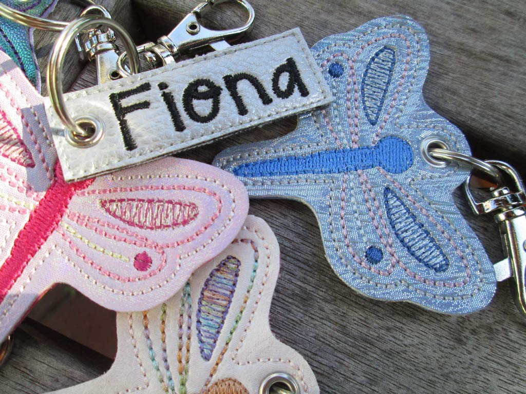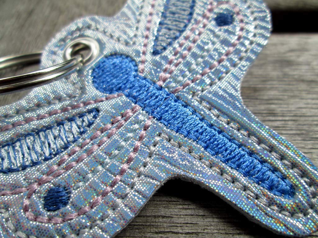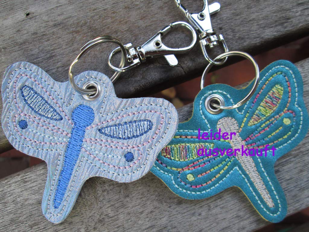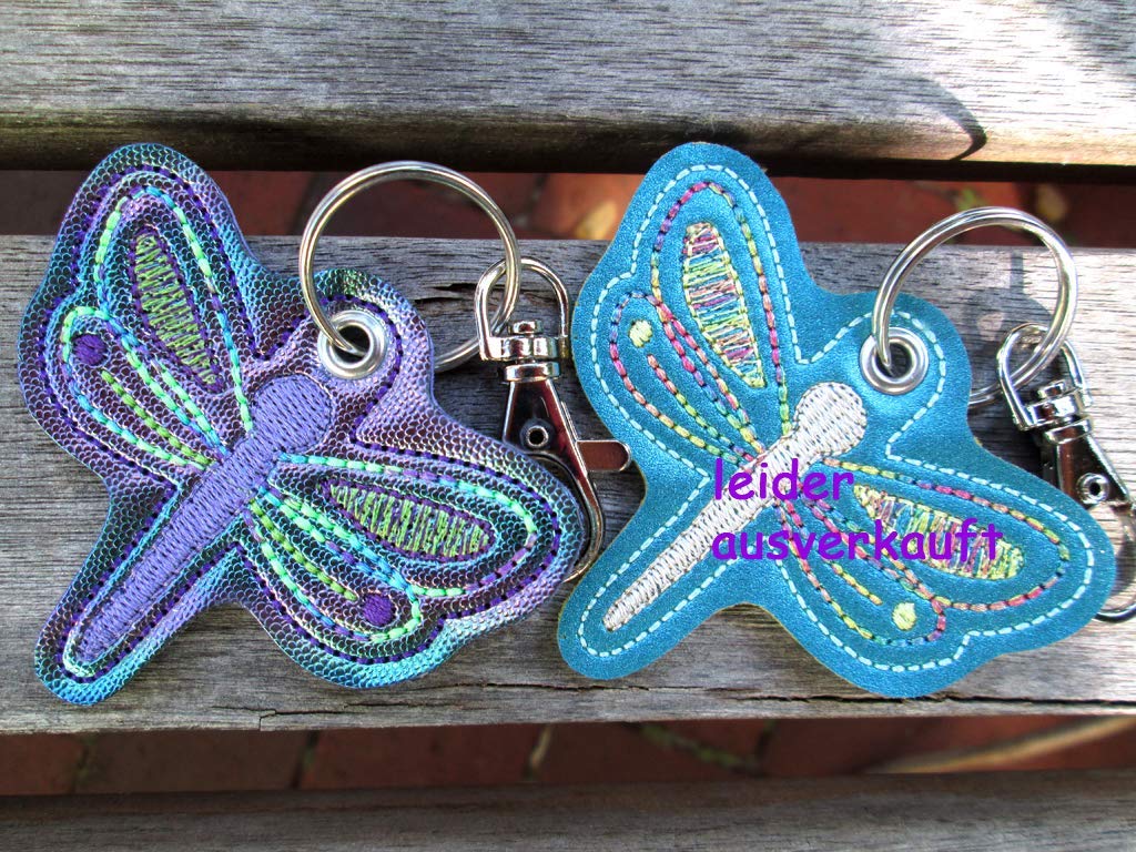 Die Stickdatei des Libellen-Schlüsselanhängers ist von Himbeerdesign.