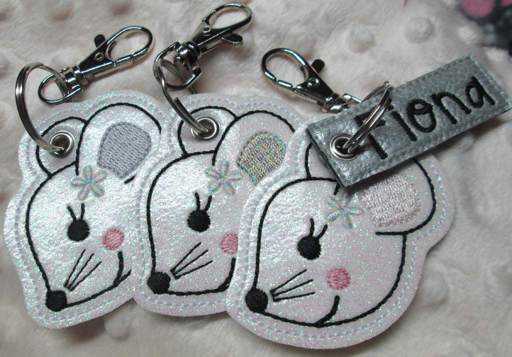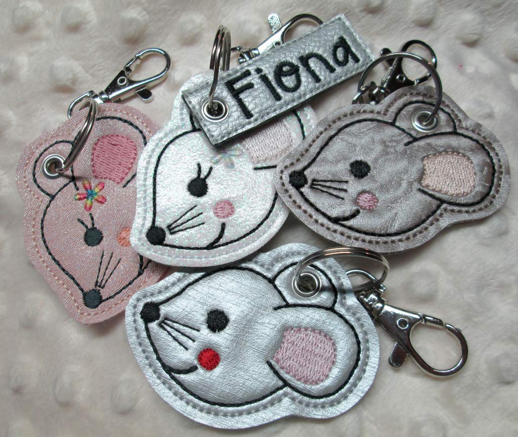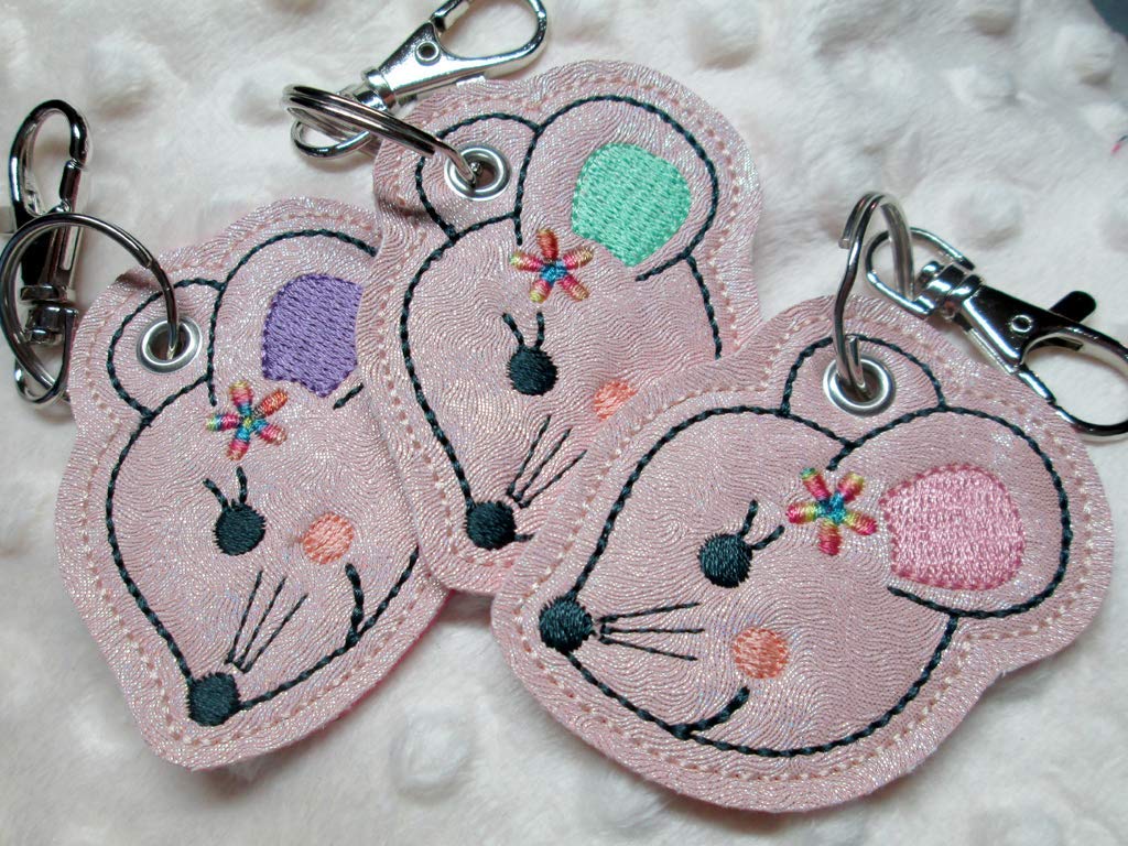 Die Stickdatei für den Maus Taschenanhänger/Schlüsselanhänger ist von Himbeerdesign.