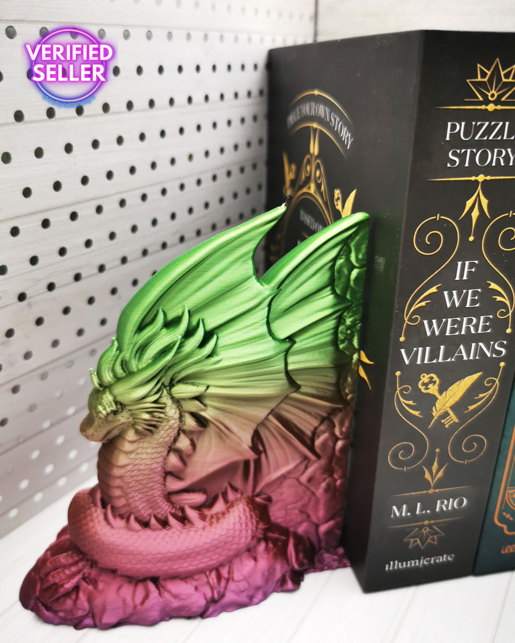 Die beiden tollen Geschöpfe passen perfekt zu von der Größe her "normalen" Taschenbüchern oder ähnlichem, die Drachen messen 13cm in der Höhe, die Grundfläge ist ca. 14cm lang, davon ist der Teil, welcher im Regal vom Buch etc. bedeckt wird, ca. 2,7x2,2cm groß. Daran sieht man, dass dieses Set für kleinere Bücher geeignet ist, sehr große und schwere Bücher würden nicht stabil stehen (siehe hierfür die größeren Stützen im Shop).