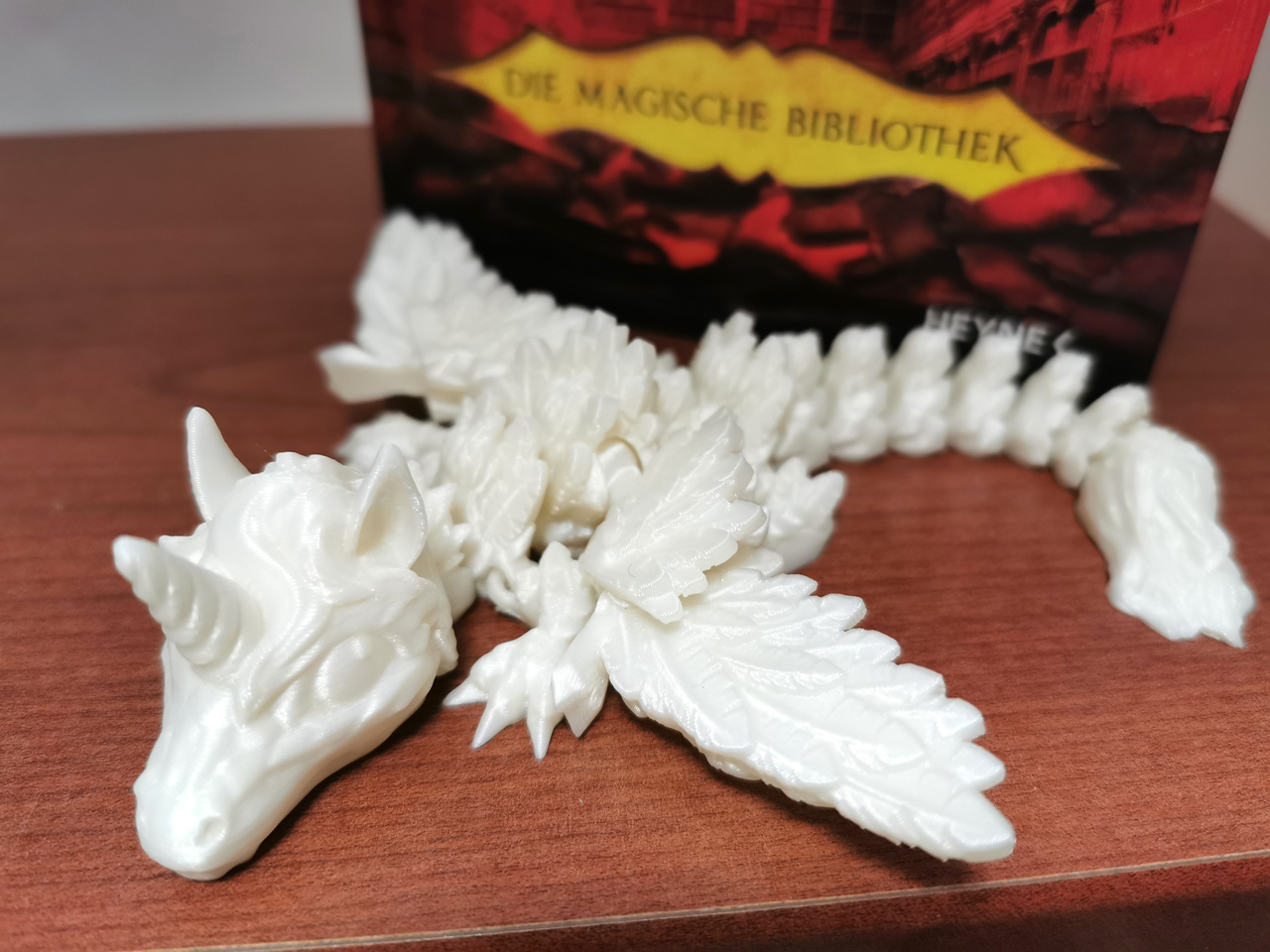 Die Design-Datei stammt von Cinderwing. Wir sind autorisierter Händler für diese 3D-gedruckte Drachen-Figur.